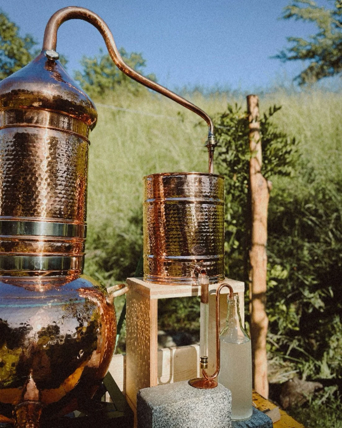 Unsere Hydrolate entstehen durch echte Handarbeit und traditionelle Destillation. Keine Zusätze, kein Alkohol, – nur der feine Pflanzenduft und die pure Kraft aus Wurzel, Blatt und Blüte. Direkt vom Kupferkessel in die Flasche. Rustikal? Unbedingt! Aber eben auch im Geiste der Zeit.